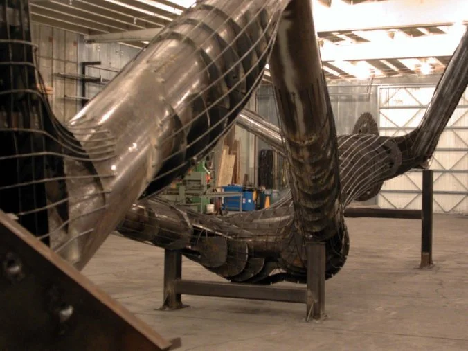 "Dancers" was permanently installed in front of the Denver Performing Arts Complex on June 12, 2003. It is a 25-ton steel and fiberglass sculpture. Mounted around the circular base of the sculpture (at ground level) are 5 speakers, which continuously play the song "Let's Dance". "Let's Dance" was composed, performed and recorded by Jonathan Borofsky and Samuel Conlogue at Infusion Studios in Portland, Maine. (See Music Index, #5) The sculpture was commissioned by the people of the City and County of Denver, in conjunction with the Mayor's Commission on Art, Culture, and Film, and the Denver Art, Culture and Film Foundation.